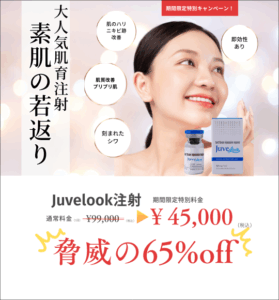 当クリニックオススメ、大人気肌育注射のJUVELOOKが今だけ65%OFF!