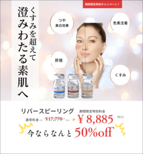 澄みわたる素肌へ、リバースピーリングが今だけ特別価格の半額で対応可能です