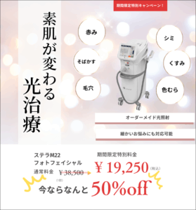 ステラM22利用、フォトフェイシャルが今だけ特別価格の半額で対応可能です