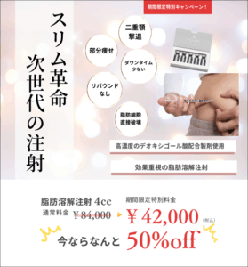 今だけ特別価格、4ccの施術が半額で対応可能です